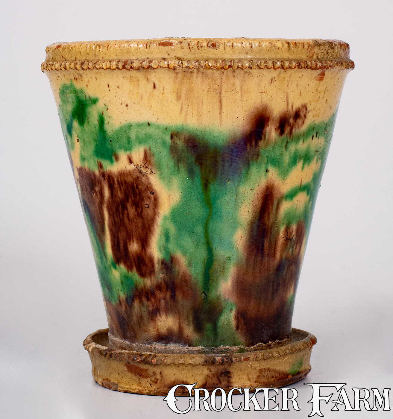 Shenandoah Valley Multi-Glazed Redware Flowerpot, Strasburg, VA