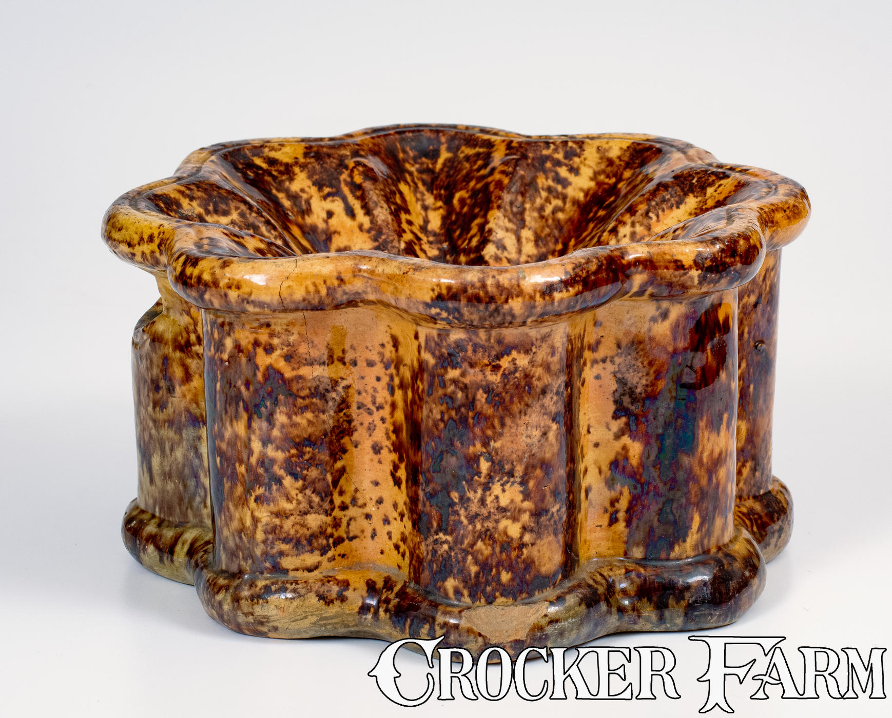 Rare Glazed Redware Spittoon, Inscribed "S. Bell," Solomon Bell, Strasburg, VA, circa 1870