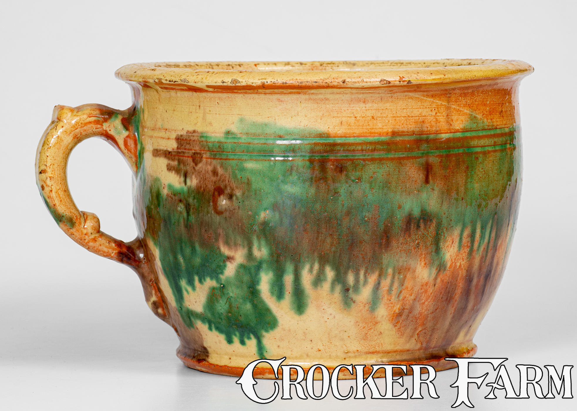 Extremely Rare Multi-Glazed Redware Chamberpot, attrib. S. Bell & Sons, Strasburg, VA