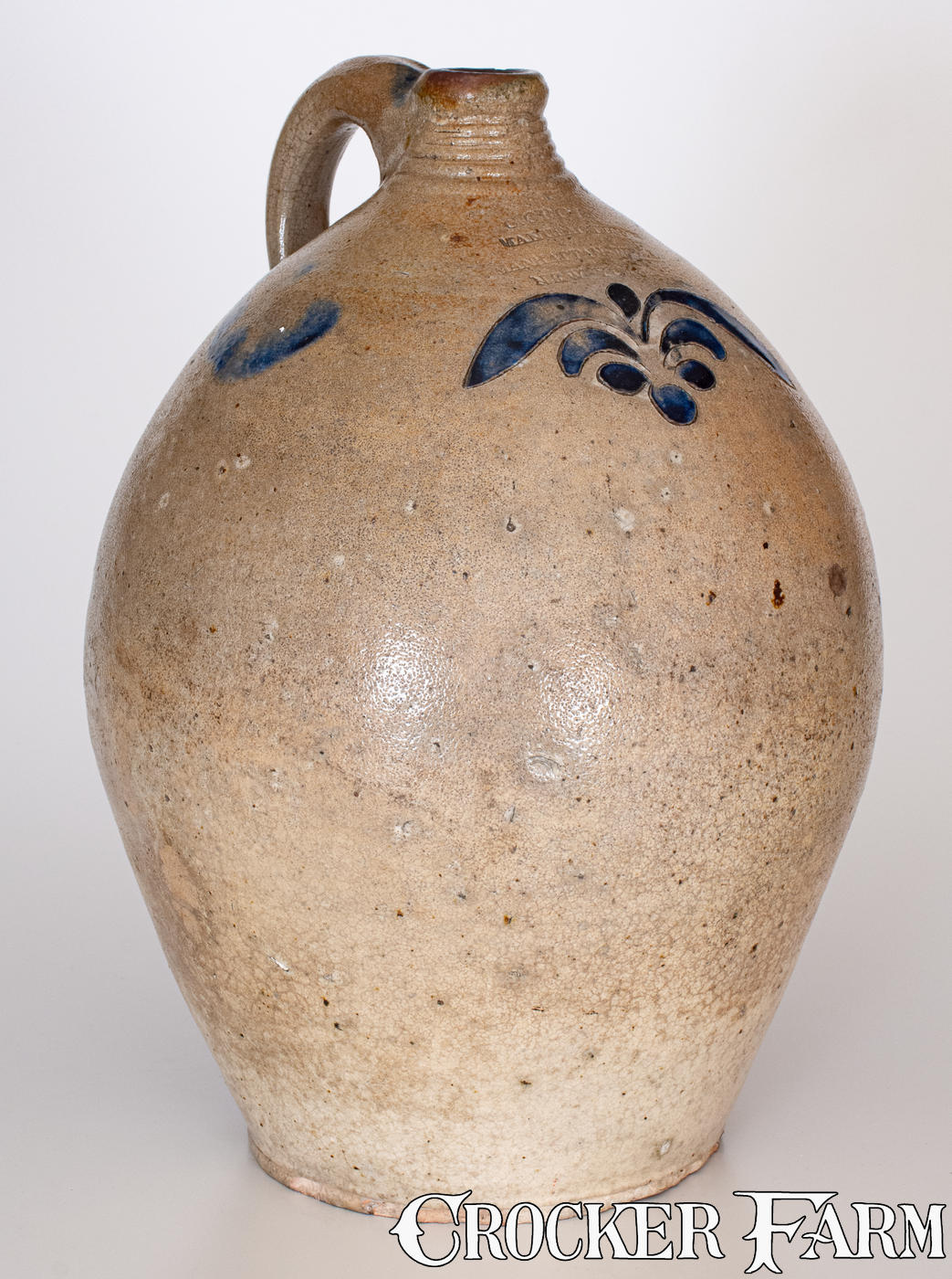 Very Fine C. CROLIUS, New York City Stoneware Jug w/ Incised Decoration