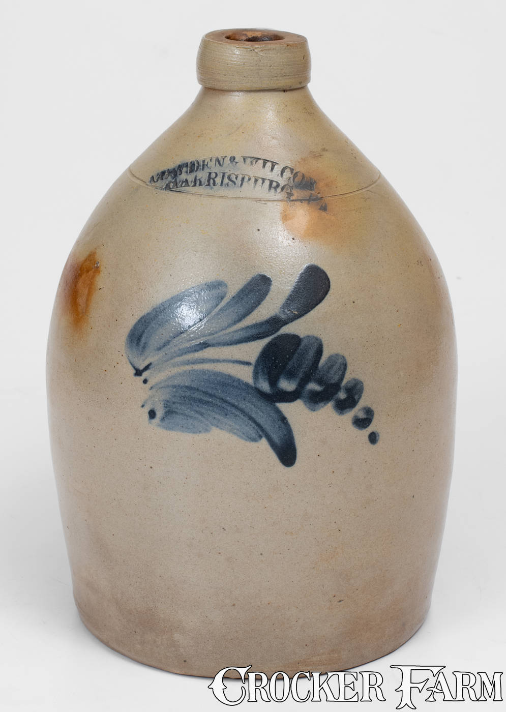 One-Gallon COWDEN & WILCOX / HARRISBURG, PA Stoneware Jug w/ Floral Decoration, c1865