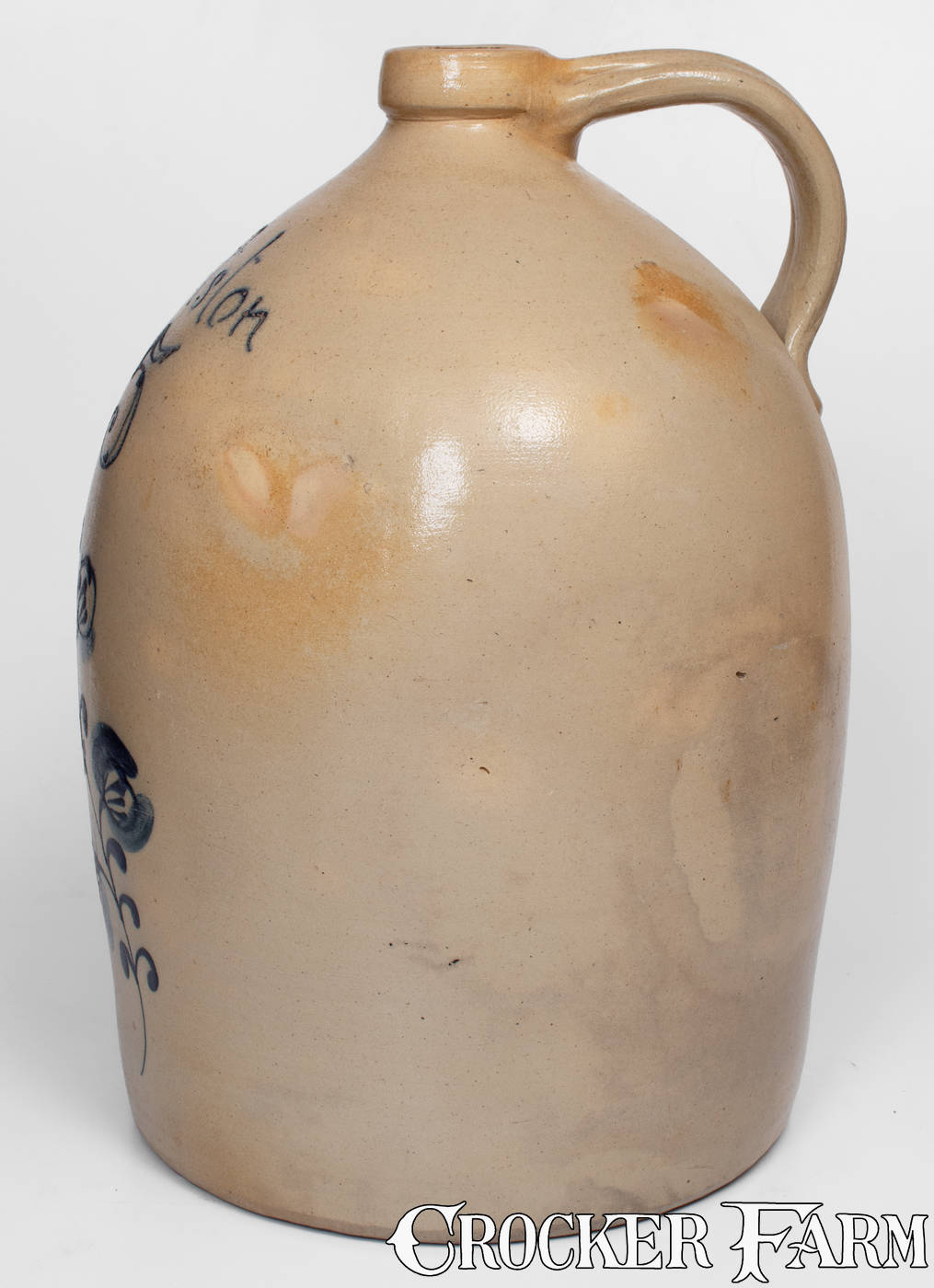 Very Rare 5 Gal. "Pittston" Stoneware Jug w/ Slip-Trailed Floral Decoration, attrib. Evan R. Jones