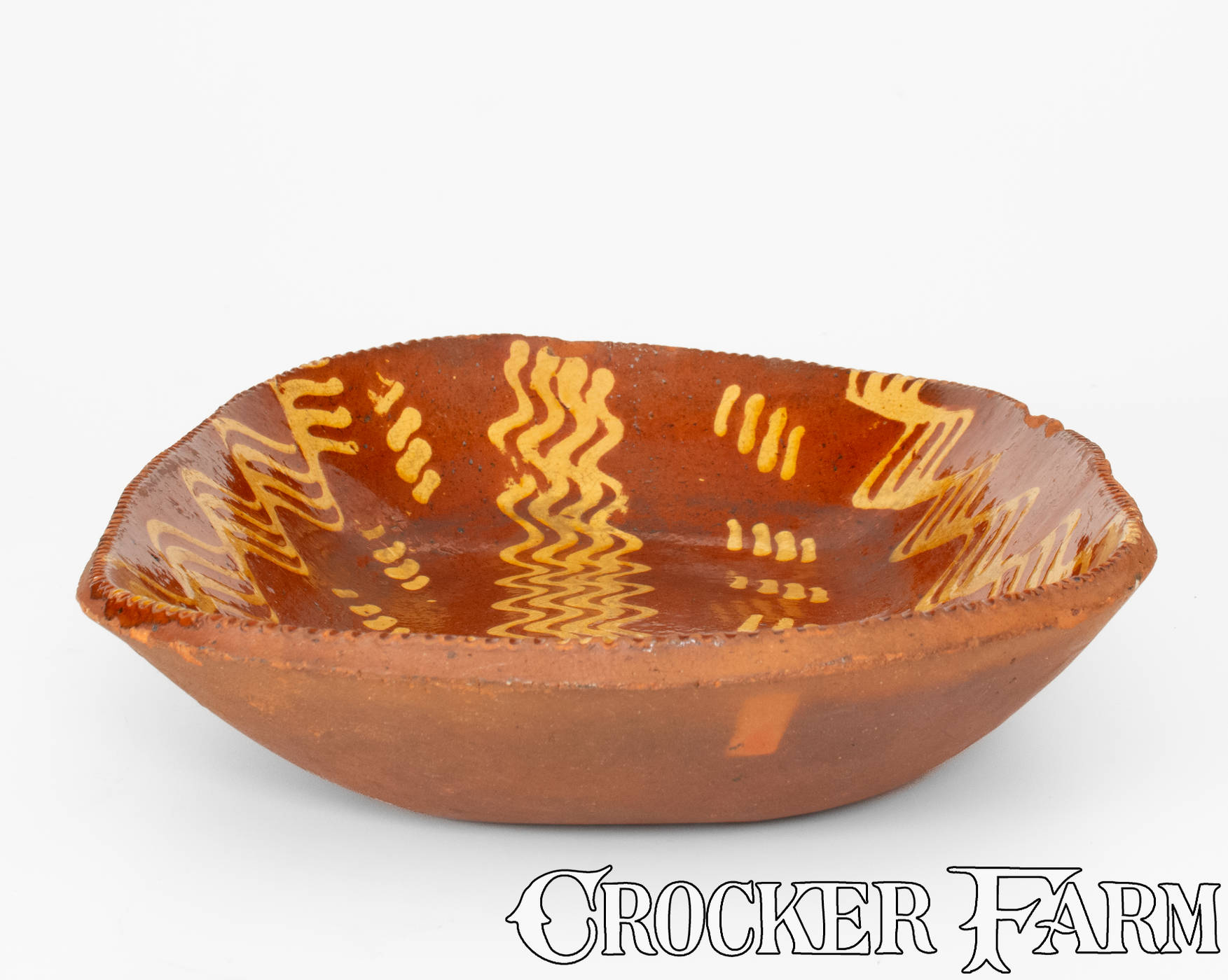 Fine Large-Sized Pennsylvania Redware Loaf Dish w/ Elaborate Yellow Slip Decoration