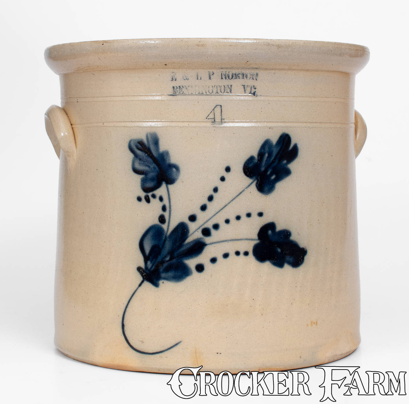 4 Gal. E. & L. P. NORTON / BENNINGTON, VT Stoneware Crock w/ Vibrant Floral Decoration