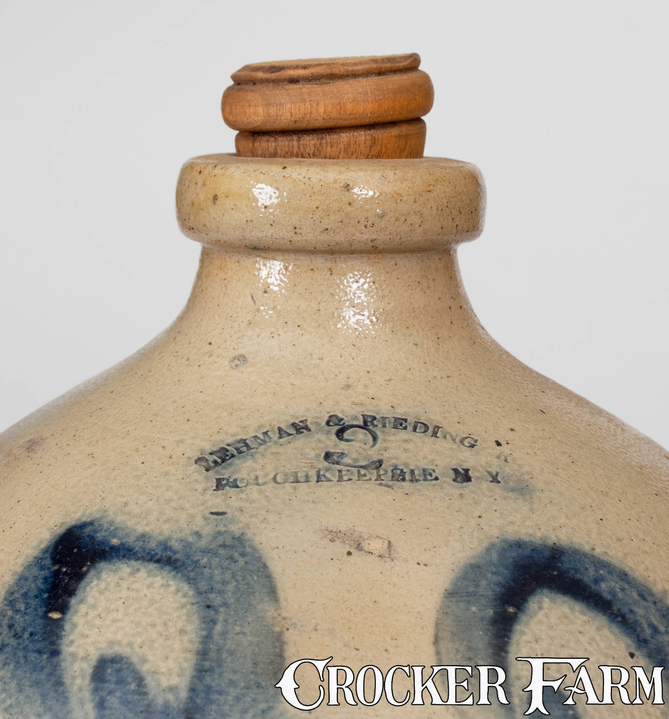 LEHMAN & RIEDINGER / POUGHKEEPSIE N Y Two-Gallon Stoneware Jug, c1845