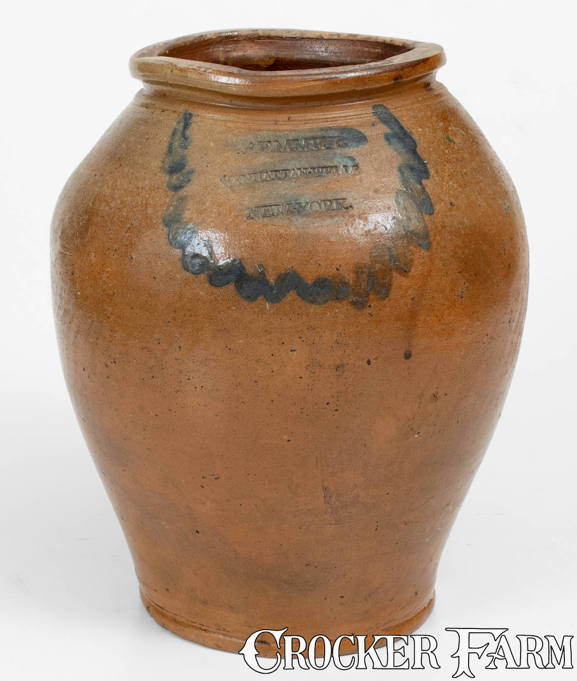 Scarce J. REMMEY / MANHATTAN-WELLS / NEW YORK Stoneware Jar w/ Incised Decoration