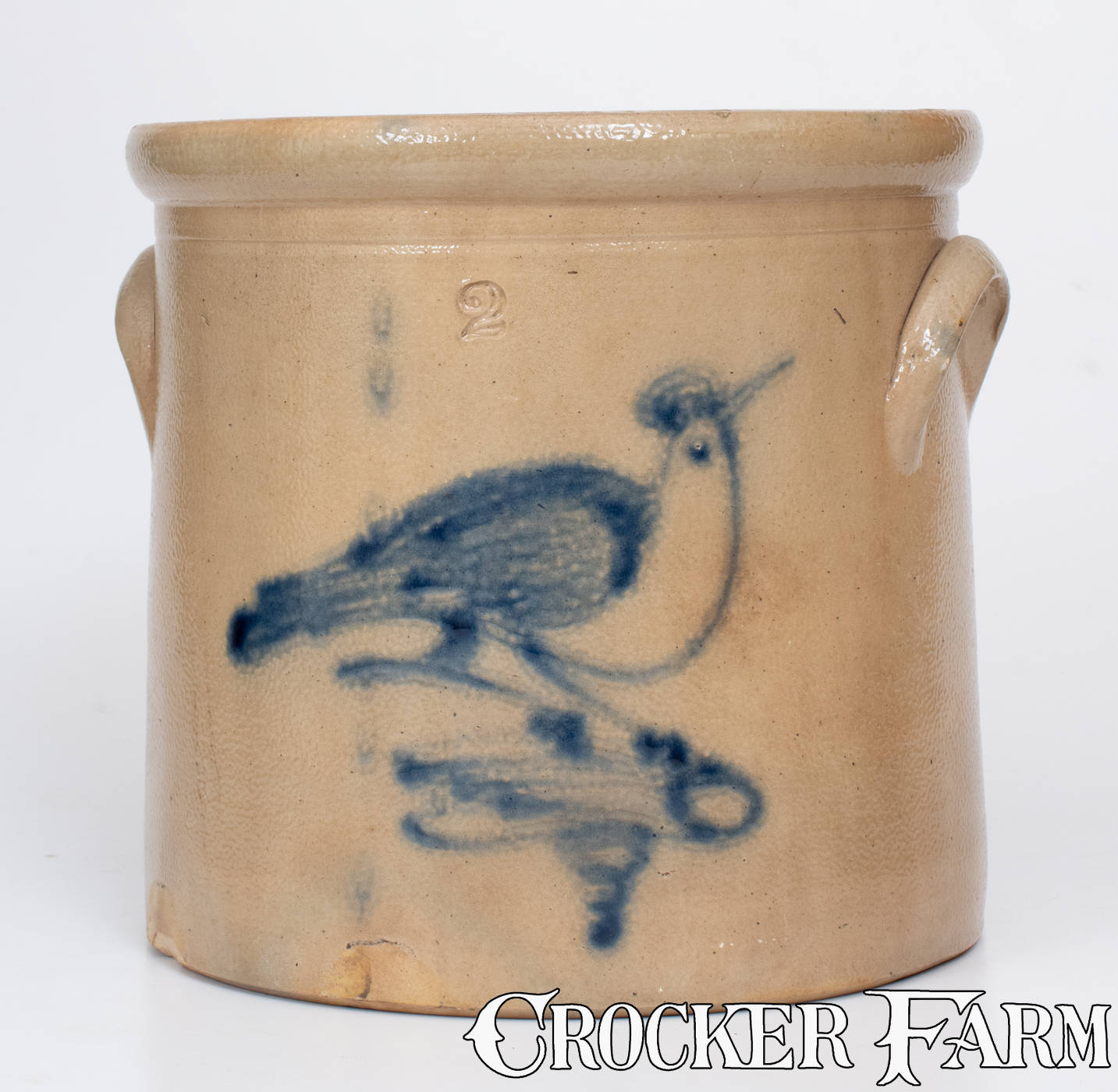 2 Gal. Stoneware Crock w/ Bird-on-Branch Decoration, Ballardvale, MA origin