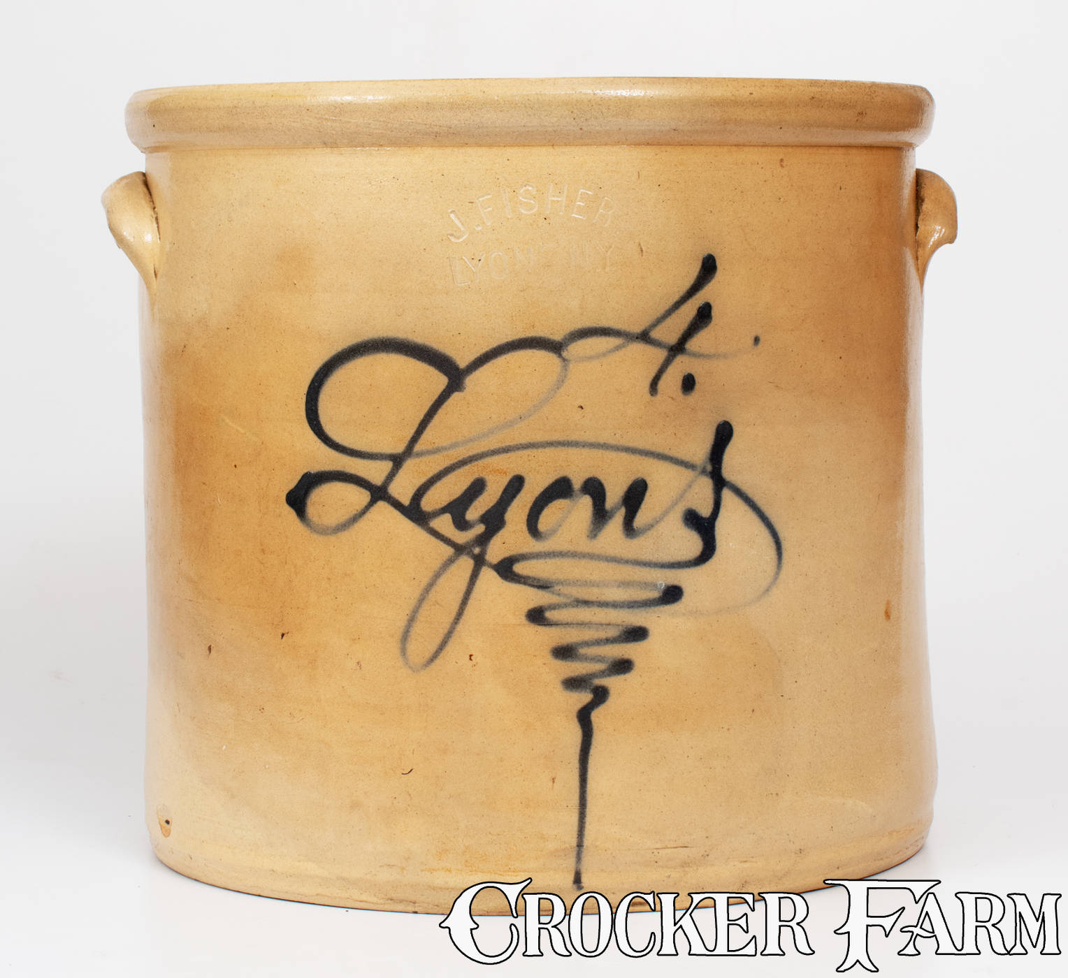 4 Gal. J. FISHER / LYONS, NY Stoneware Crock w/ Cobalt Script "Lyons"