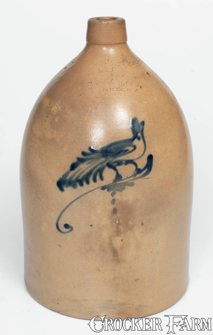 2 Gal. BRADY & RYAN / ELLENVILLE, NY Stoneware Jug w/ Bird Decoration