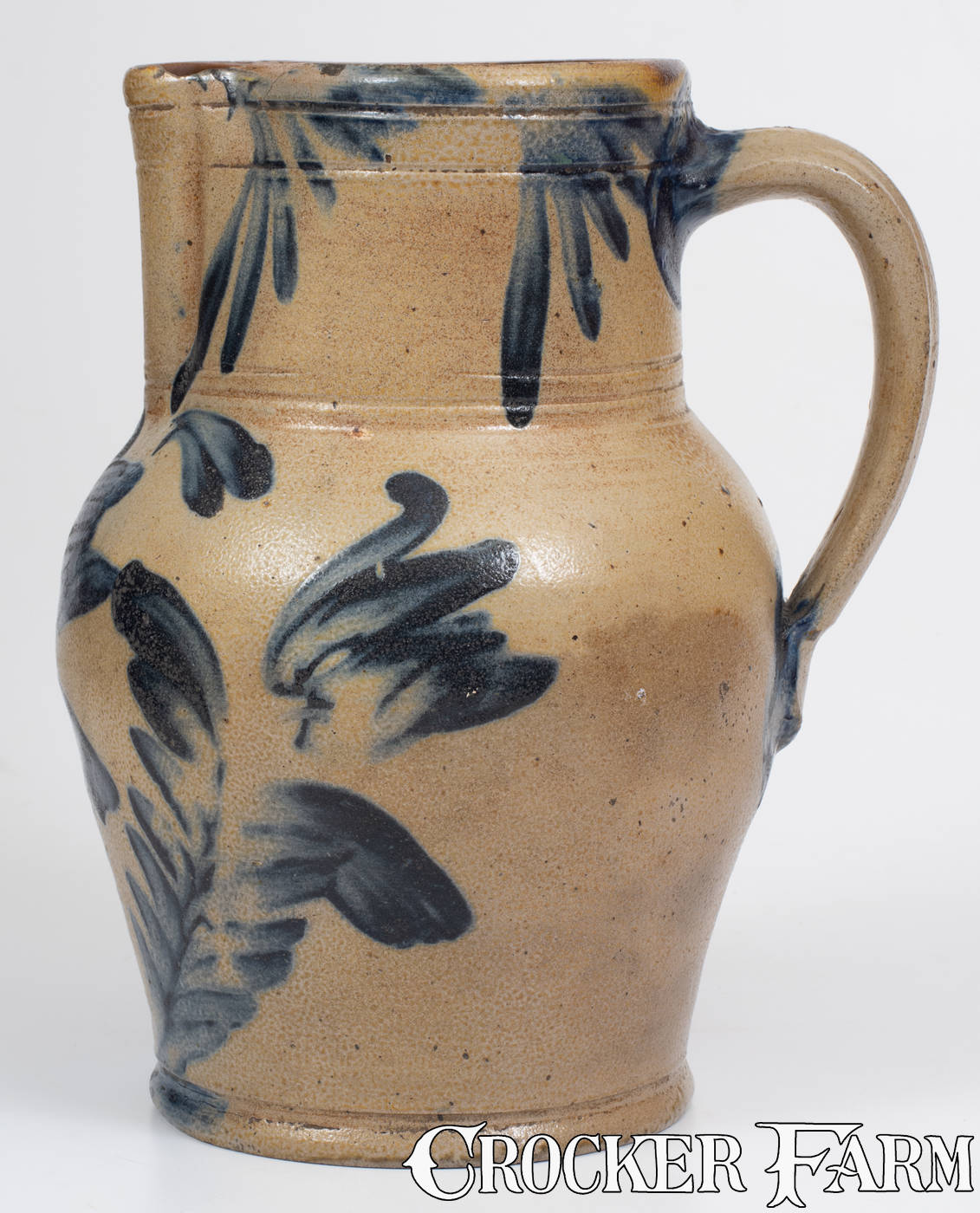 Attrib. Richard C. Remmey, Philadelphia, PA Stoneware Pitcher w/ Elaborate Cobalt Floral Decoration, circa 1870