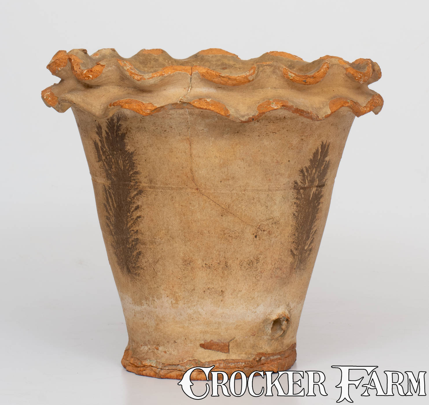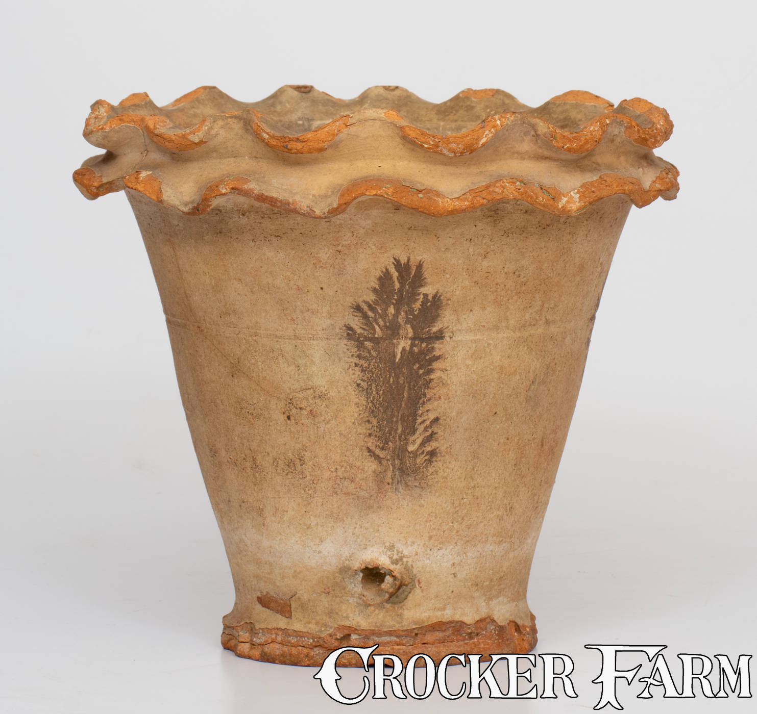 Rare SOLOMON BELL / STRASBURG / Va. Redware Flowerpot w/ Mocha-Style Seaweed Decoration