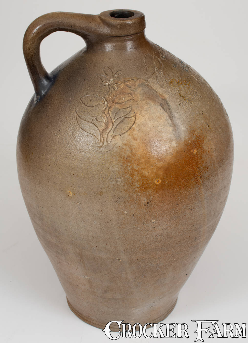 Very Rare G. BENTON & L. STEWART / HARTFORD Stoneware Jug w/ Elaborate Incised and Impressed Decoration