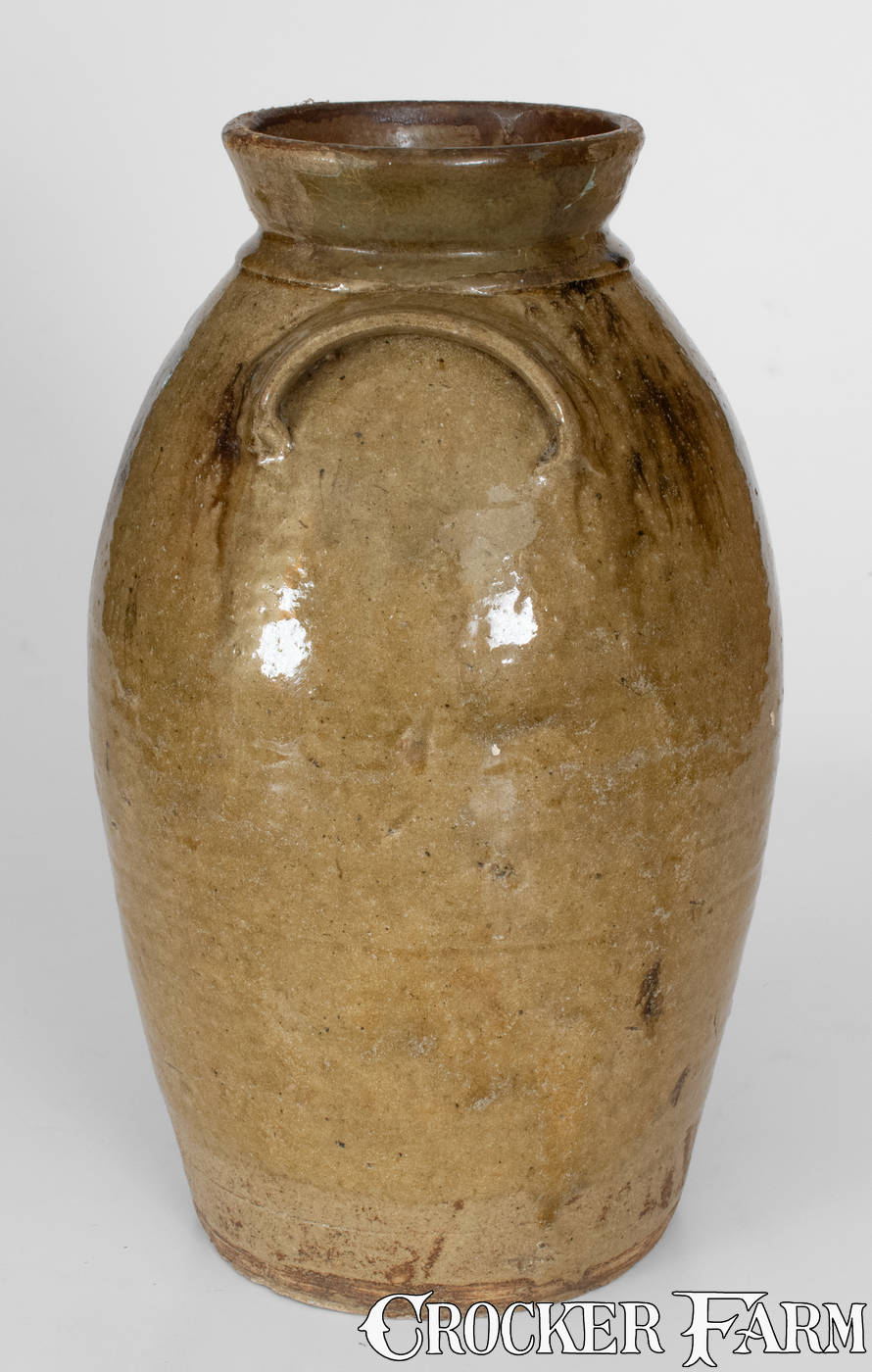Rare Two-Gallon Bacon Level, Alabama Stoneware Jar or Churn w/ Alkaline Glaze and Iron-Oxide Decoration