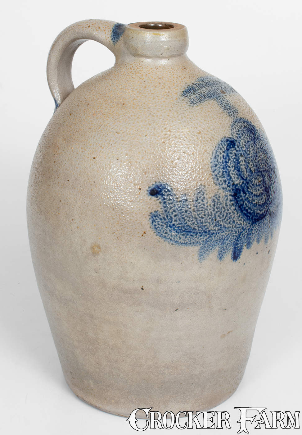 2 Gal. COWDEN & WILCOX / HARRISBURG, PA Stoneware Jug w/ Floral Decoration