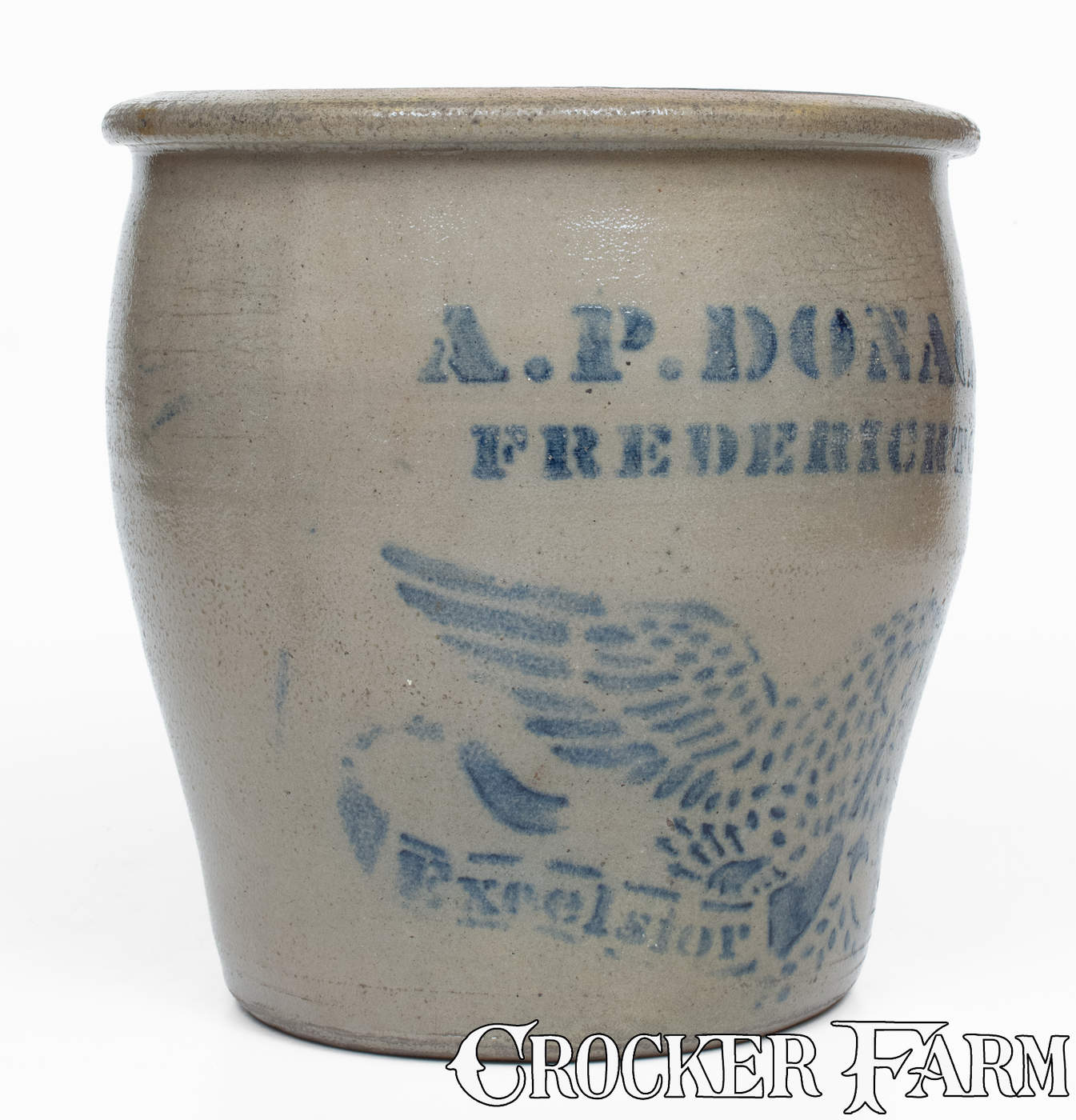 Fine A.P. DONAGHHO, / FREDERICKTOWN, PA Stoneware Stenciled Eagle Jar