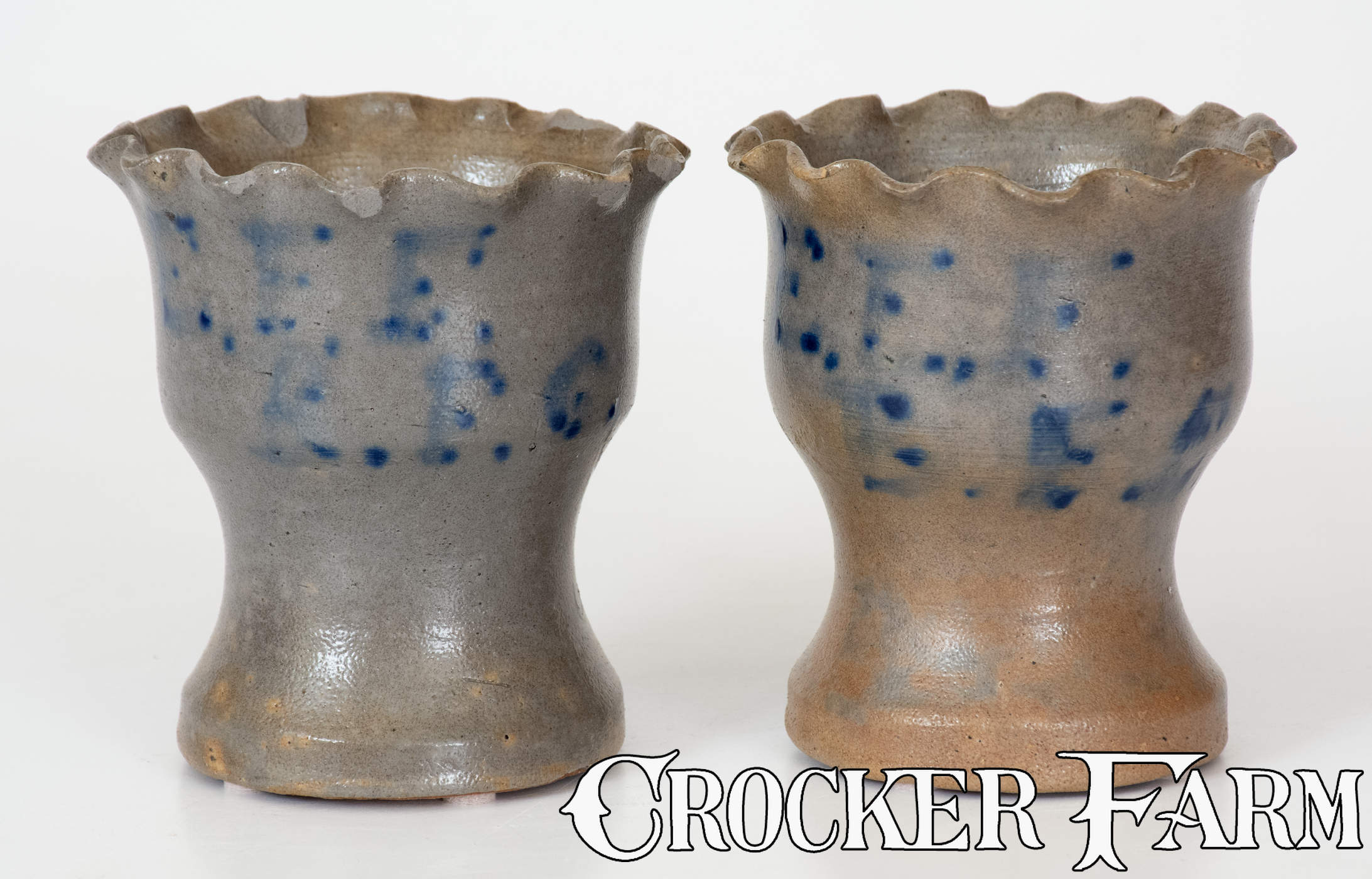 Very Fine Pair of Small-Sized Crimped Rim Stoneware Flowerpots, Western PA origin