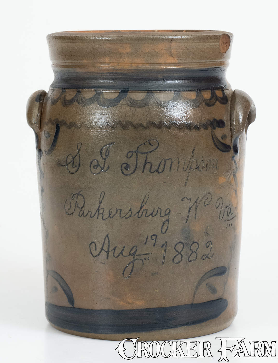 Outstanding Small-Sized Parkersburg, WV Stoneware Presentation Jar, attrib. Donaghho
