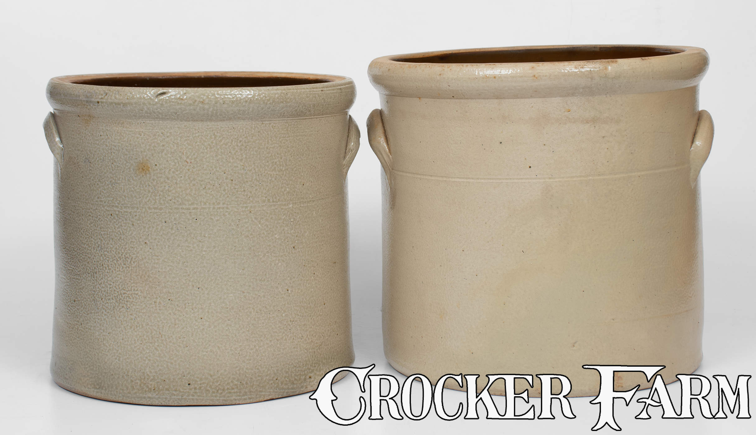 Lot of Two: New York State Pecking Chicken and Bird Decorated Stoneware Crocks