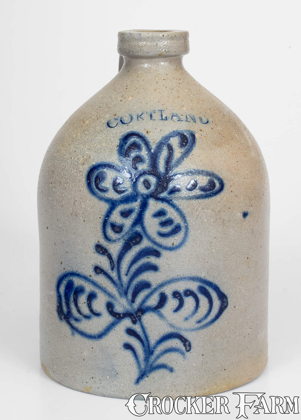 CORTLAND, New York Stoneware Jug with Slip-Trailed Floral Decoration