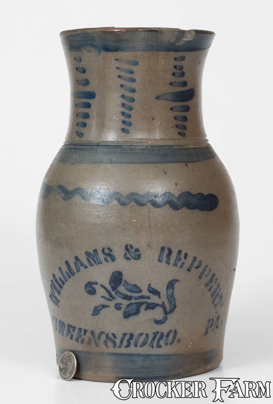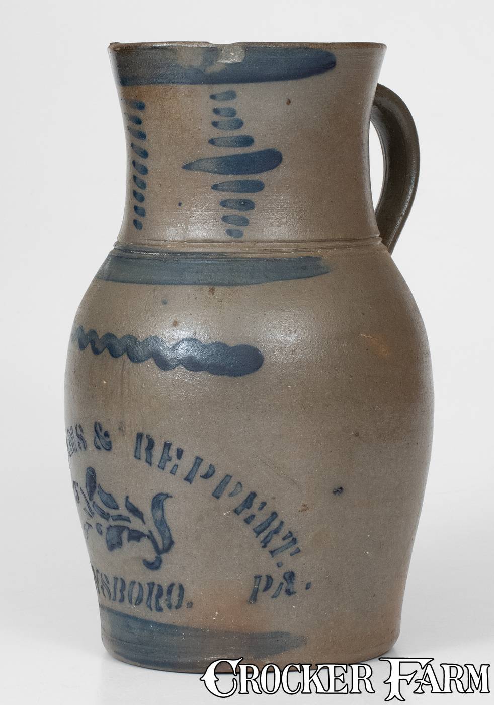 WILLIAMS & REPPERT / GREENSBORO, PA Stoneware Pitcher w/ Elaborate Decoration
