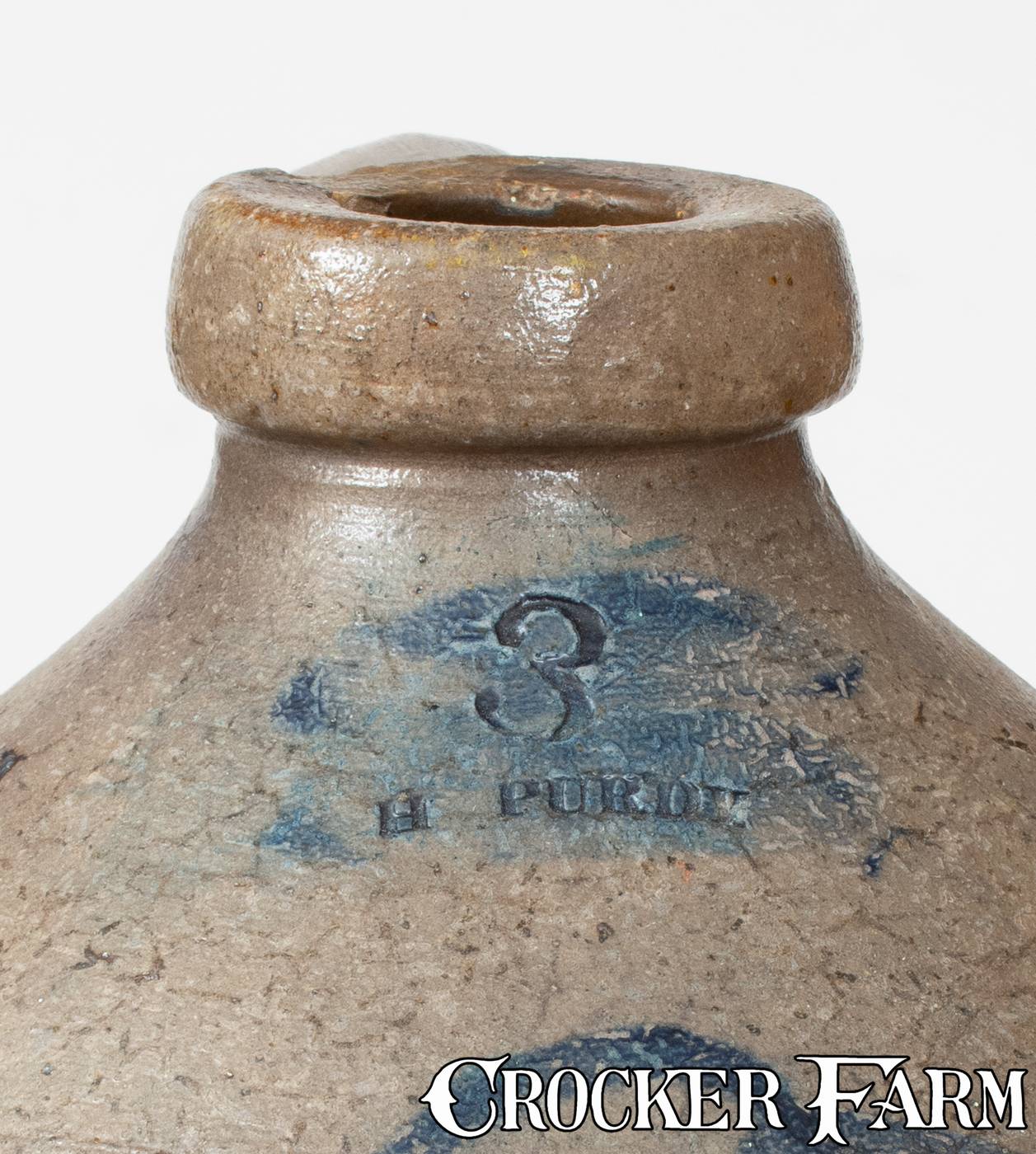 Rare H. PURDY Ohio Stoneware Jug w/ Caterpillar Decoration