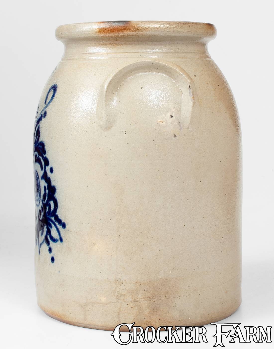 J. & E. NORTON / BENNINGTON, VT Stoneware Jar w/ Slip-Trailed Floral Basket Decoration
