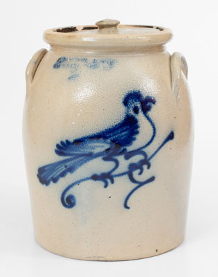 J. NORTON & CO. / BENNINGTON, VT Lidded Stoneware Jar w/ Cobalt Bird Decoration