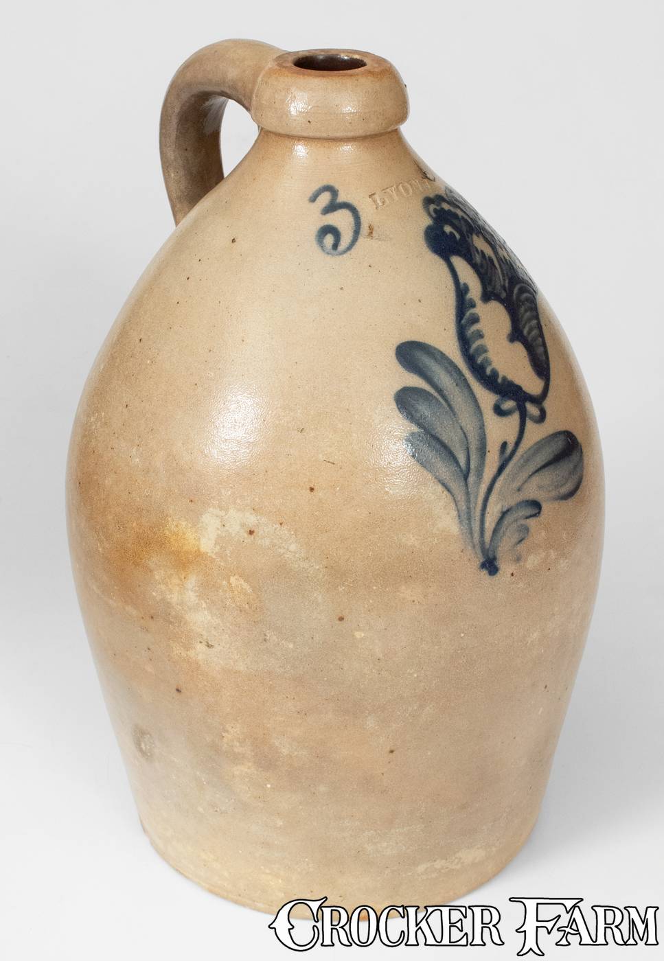 LYONS, New York Three-Gallon Stoneware Jug, c1860
