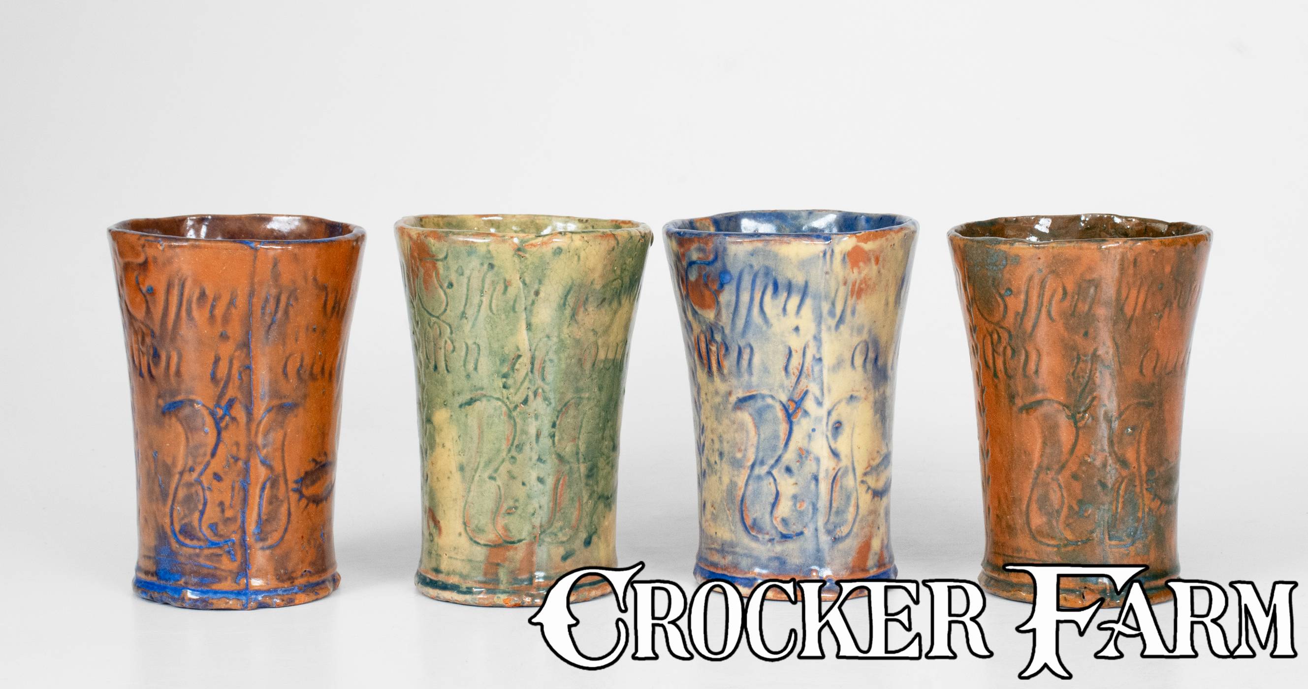 Lot of Four: Incised Redware Cups, Moravian Pottery and Tile Works, Doylestown, PA
