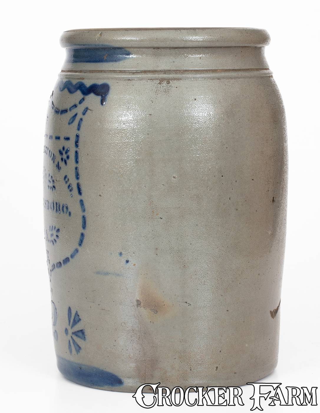 JAS. HAMILTON & CO. / GREENSBORO / PA Two-Gallon Cobalt-Decorated Stoneware Jar