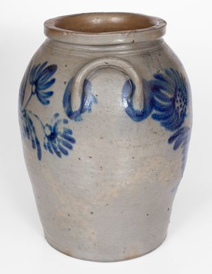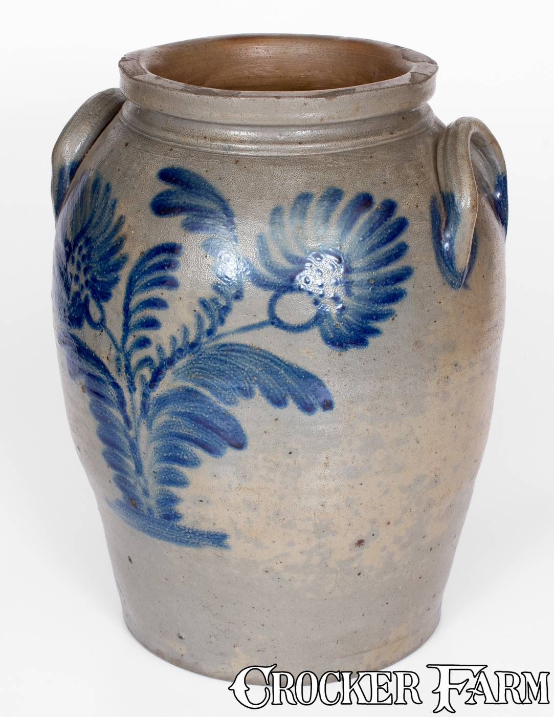 Rare and Fine Four-Gallon Baltimore Stoneware Jar with Elaborate Spotted Floral Decoration