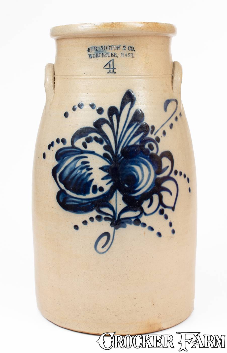 Four-Gallon F.B. NORTON & CO. / WORCESTER, MASS. Stoneware Churn, circa 1870