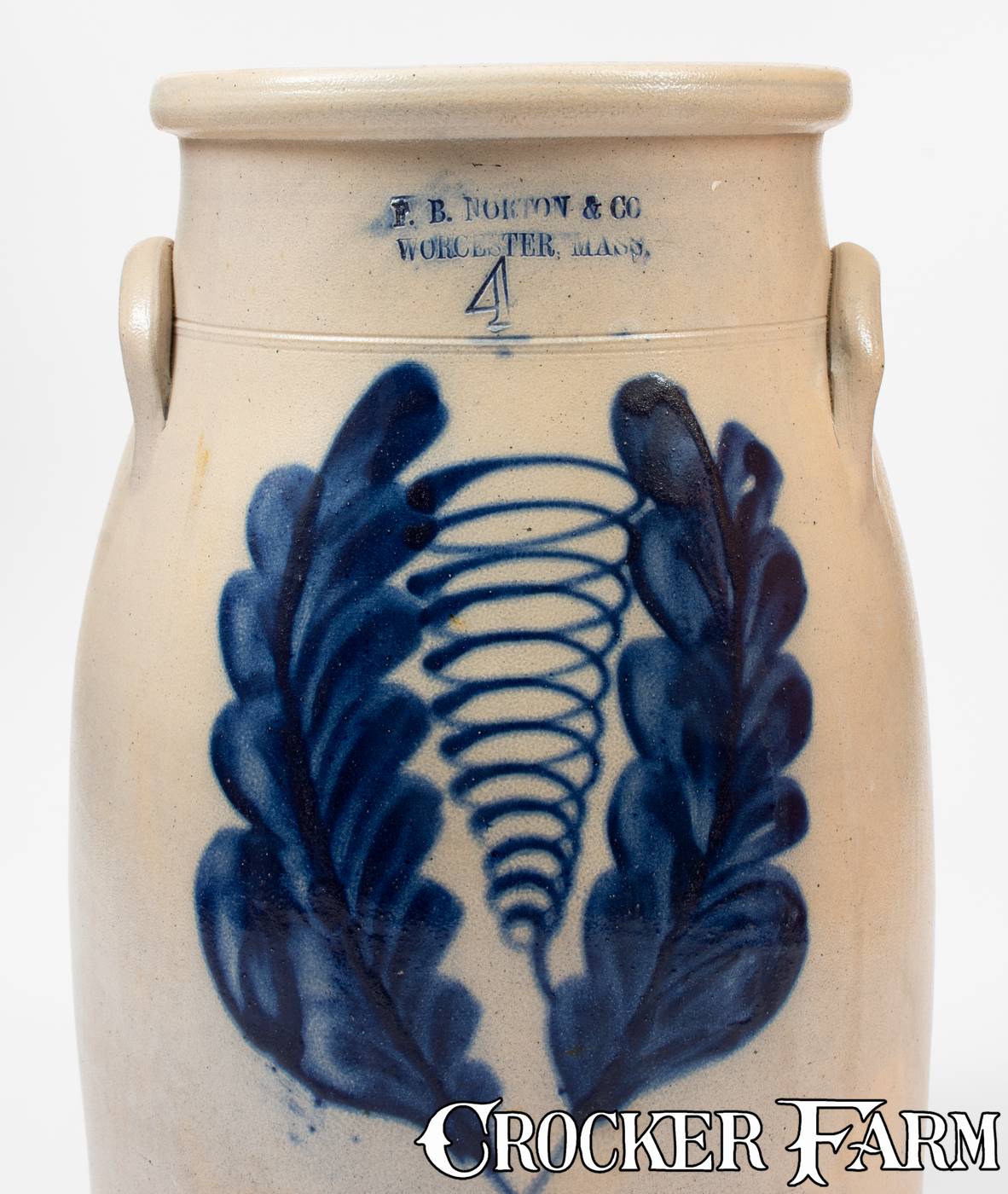 Four-Gallon F.B. NORTON & CO / WORCESTER, MASS. Cobalt-Decorated Stoneware Churn