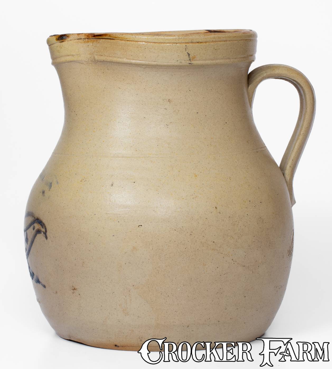 Unusual WHITE'S UTICA Stoneware Pitcher w/ Bird Decoration