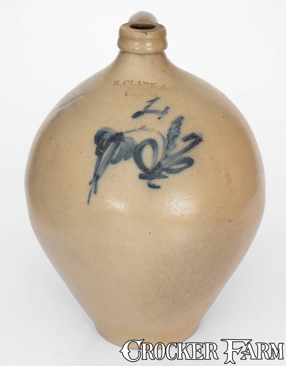 4 Gal. N. CLARK & CO. / LYONS Ovoid Stoneware Jug w/ Floral Decoration