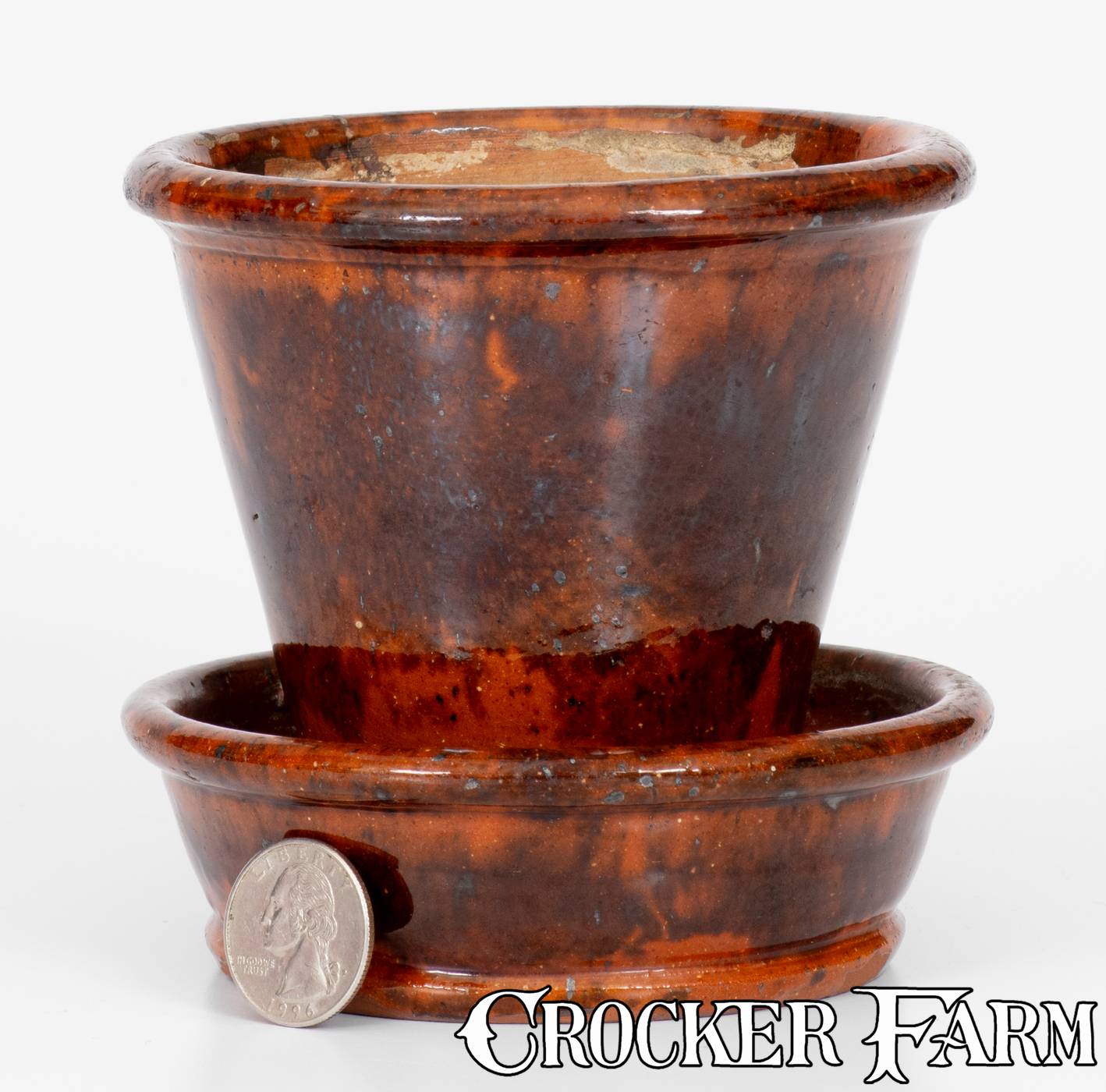 Small Glazed JOHN W. BELL / Waynesboro, Pa. Redware Flowerpot, late 19th century