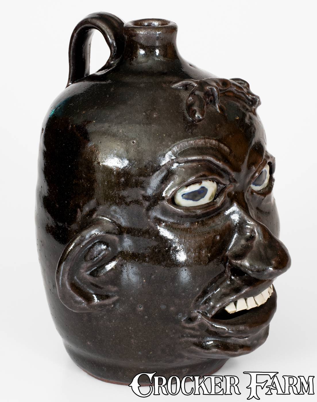 Chester Hewell Face Jug with Lizard, Signed "Chester Hewell - 1997 - CSA"
