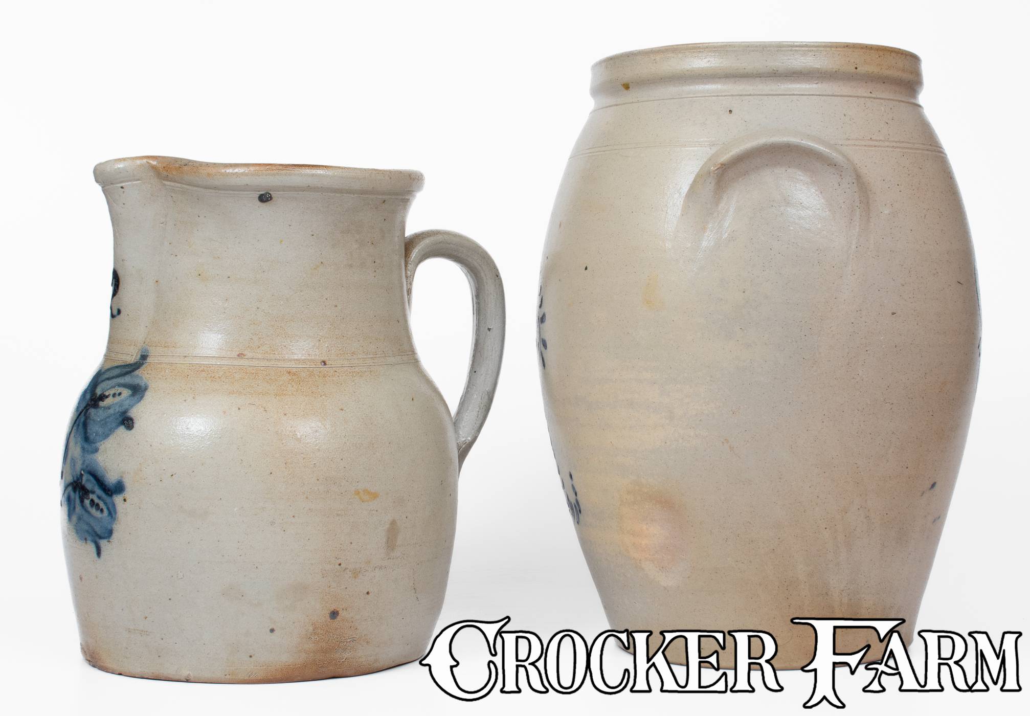 Two Pieces of Cobalt-Decorated Stoneware, New Jersey origin