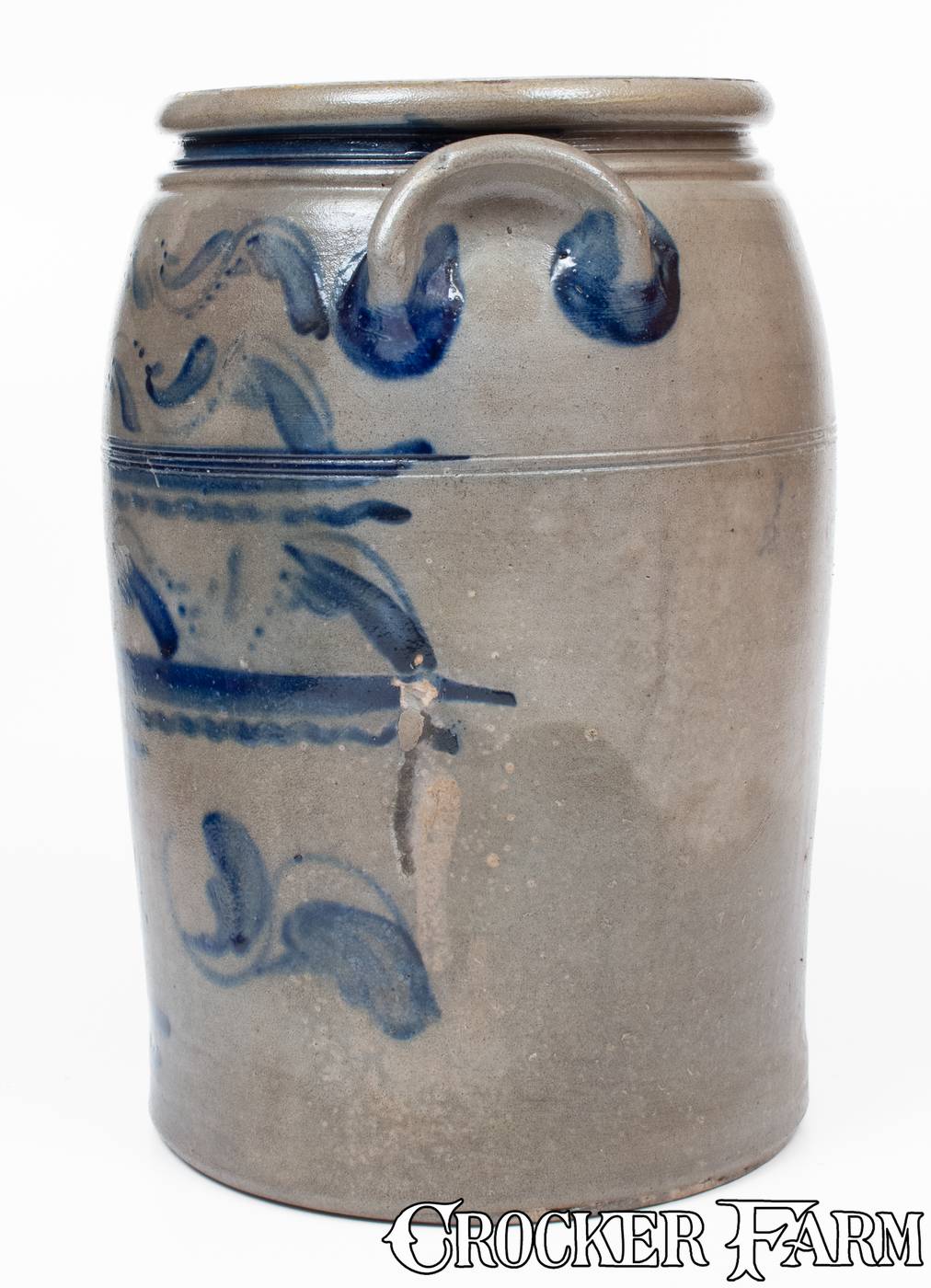 Scarce BOUGHNER / GREENSBORO Four-Gallon Stoneware Jar w/ Elaborate Freehand Decoration