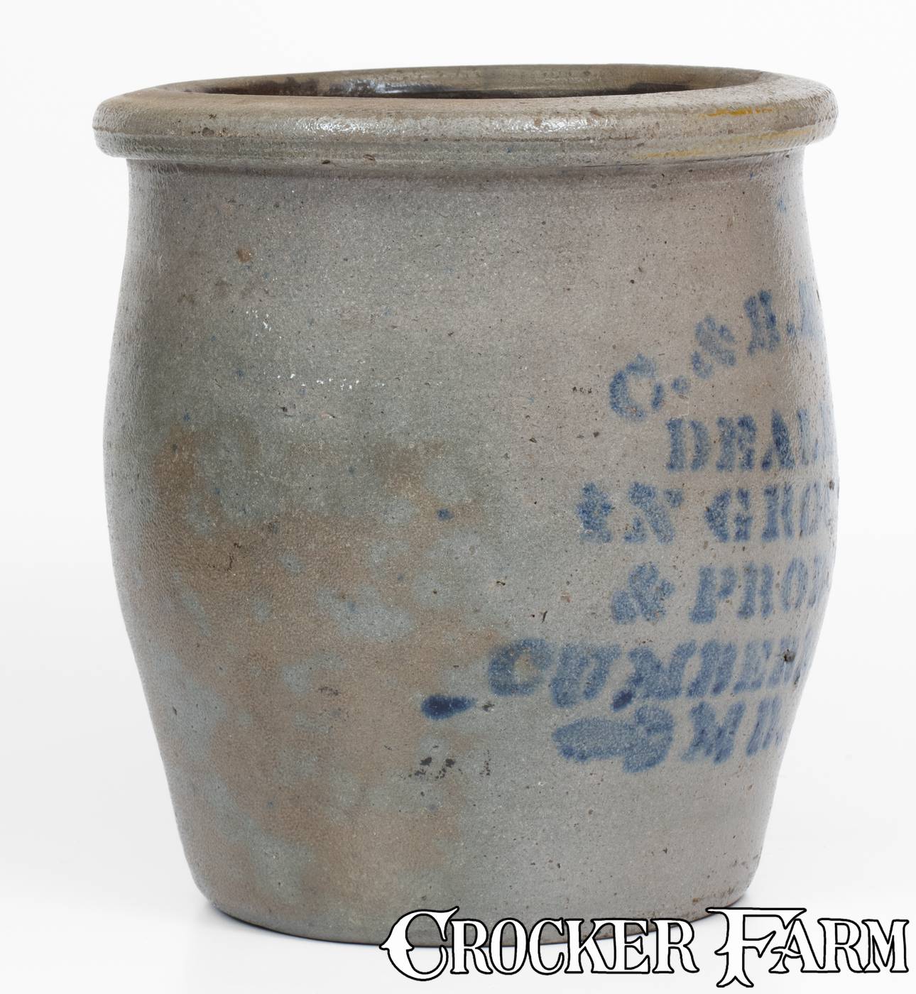 Cumberland, Maryland Stoneware Advertising Jar, Western PA origin, c1875
