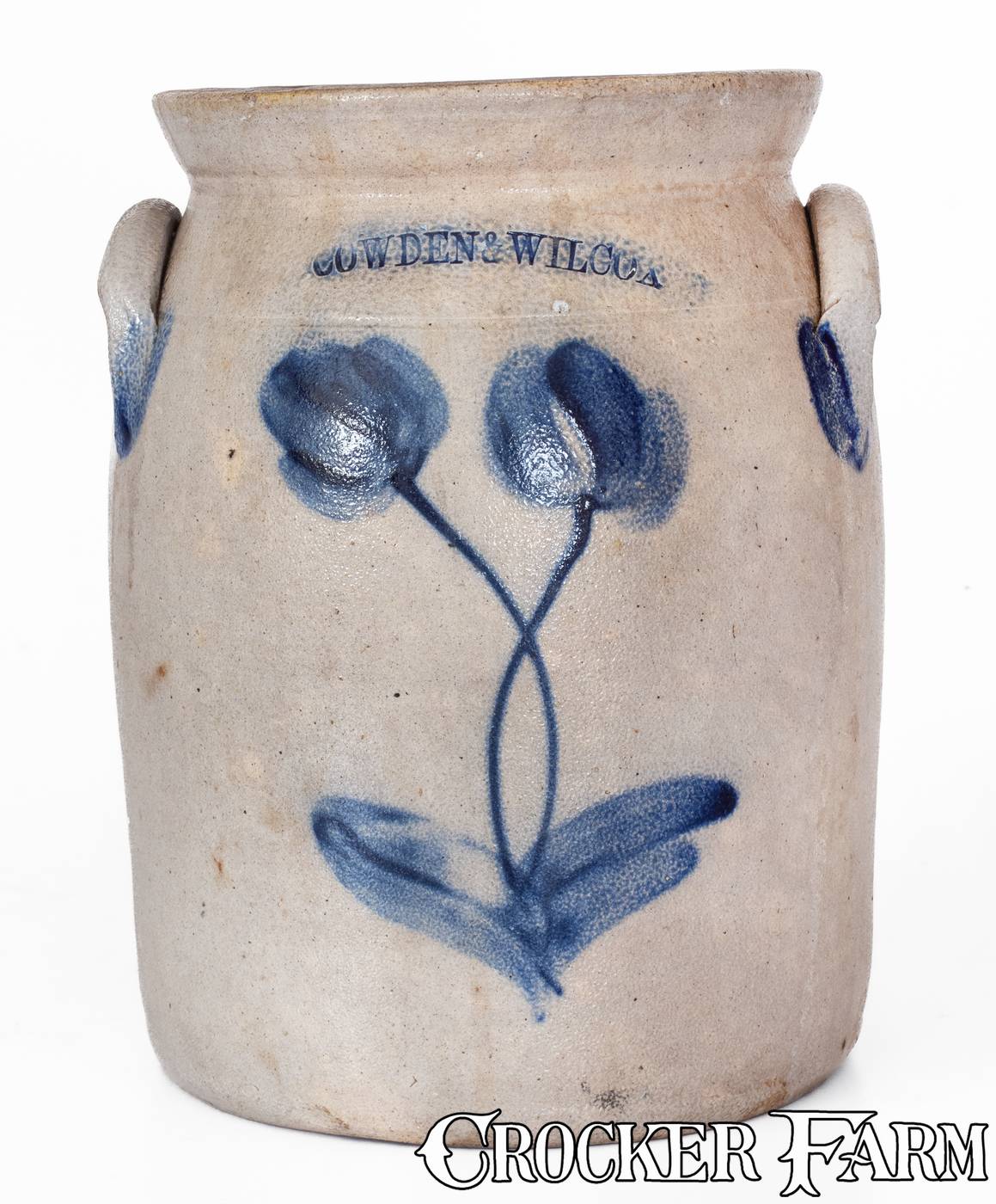 One-Gallon COWDEN & WILCOX, Harrisburg, PA Stoneware Jar w/ Floral Decoration, c1865