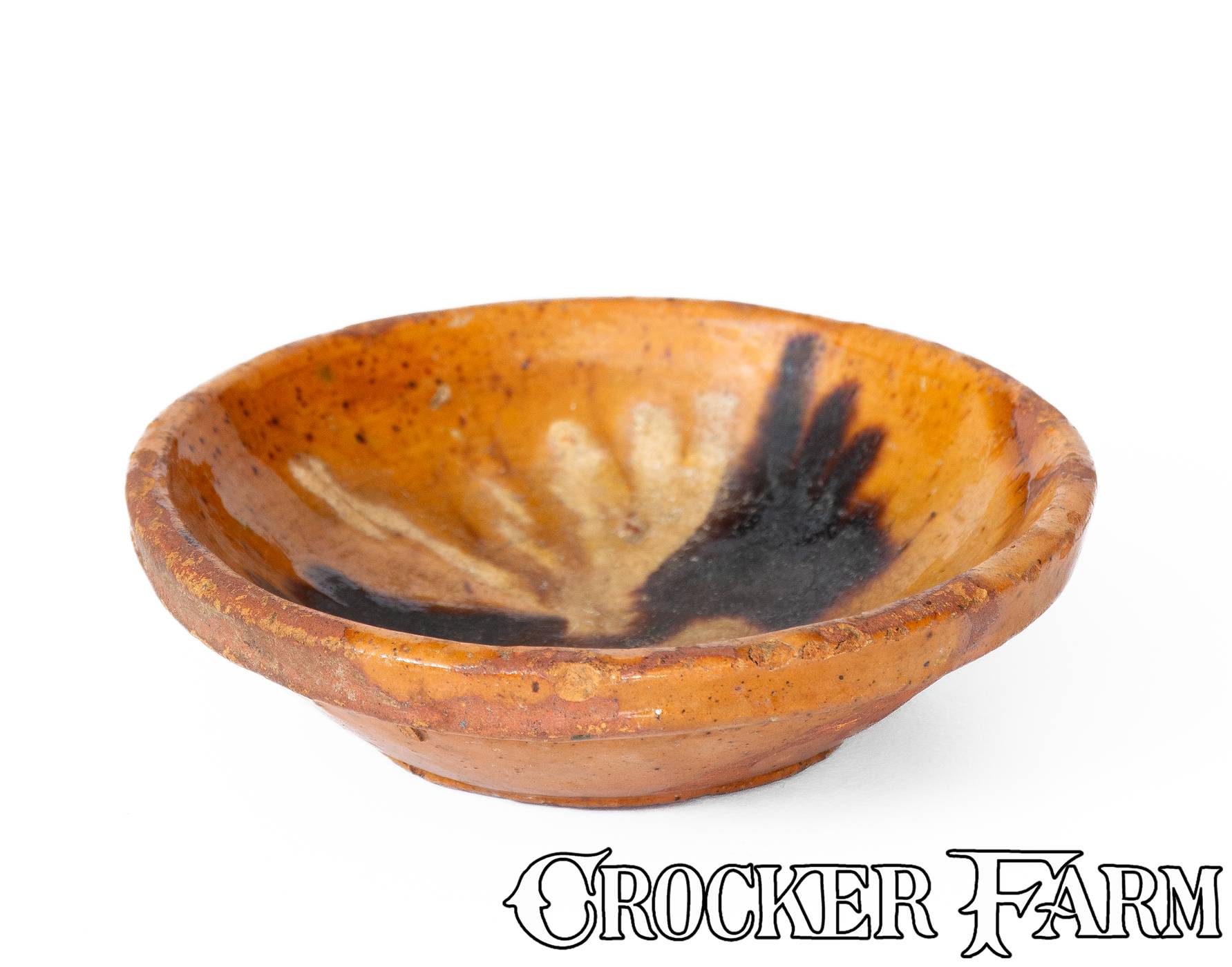 Scarce Miniature Pennsylvania Redware Dish w/ Two-Color Slip Decoration