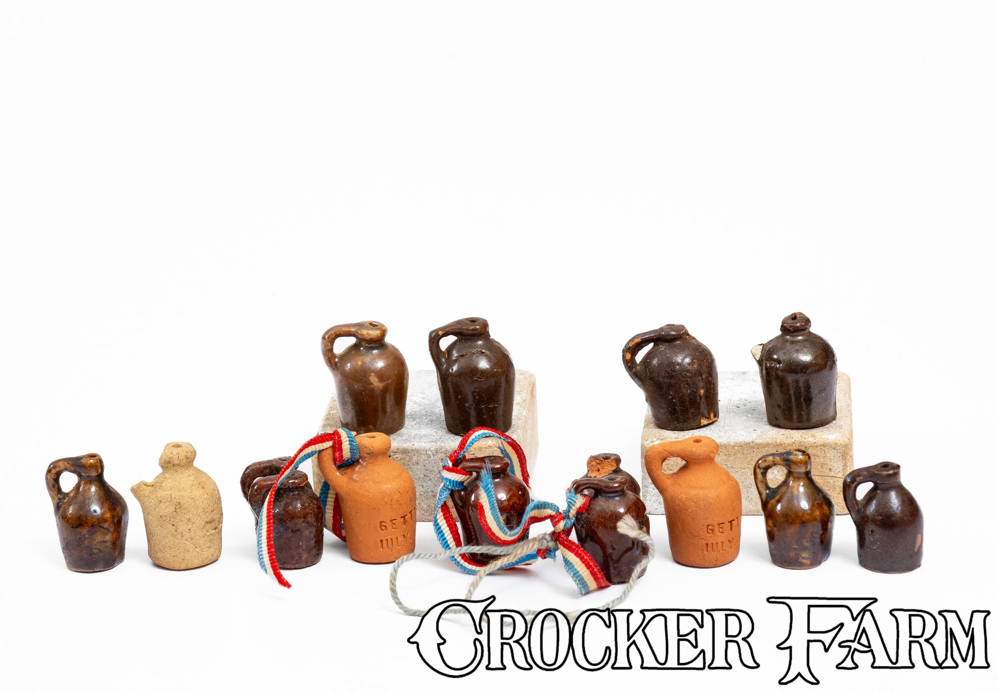 Very Rare Plaster Miniature Jug Mold w/ Thirteen Pottery Jugs, Speese & Son, Gettysburg, PA