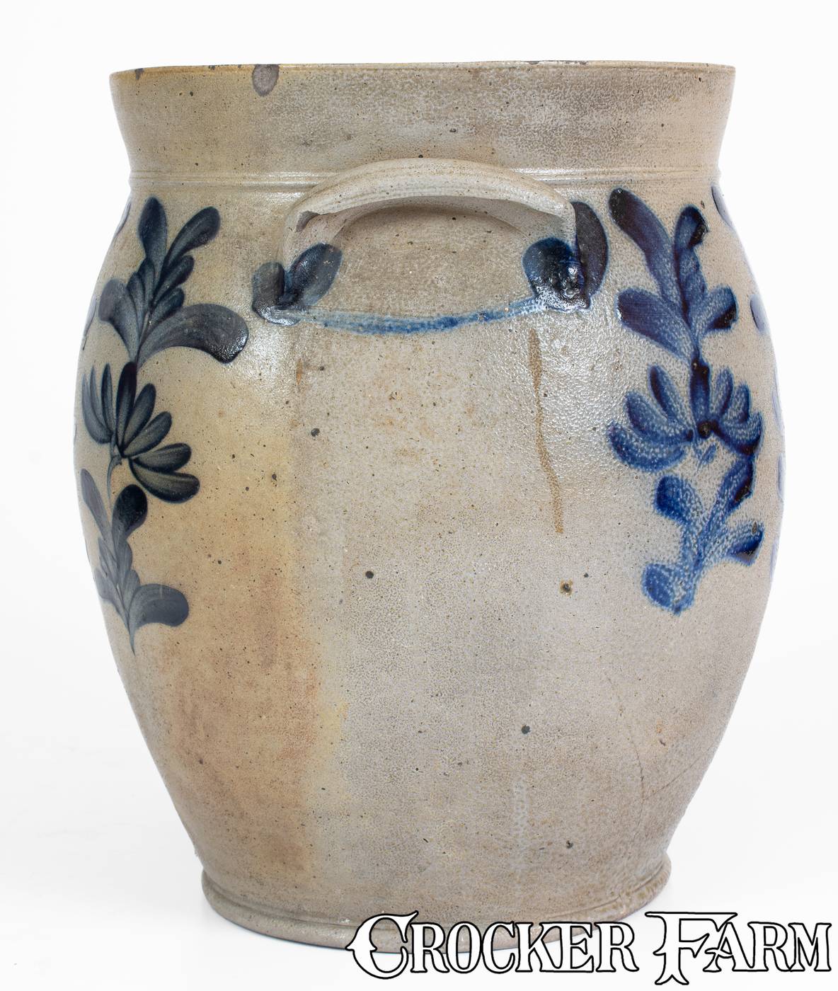 Four-Gallon attrib. Henry H. Remmey, Philadelphia Stoneware Jar w/ Elaborate Cobalt Floral Decoration