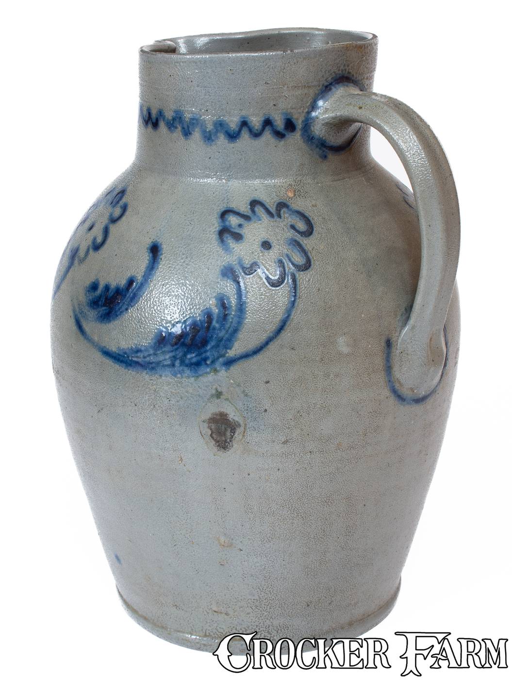 Fine Two-Gallon Baltimore Stoneware Pitcher w/ Slip-Trailed Floral Decoration, c1820