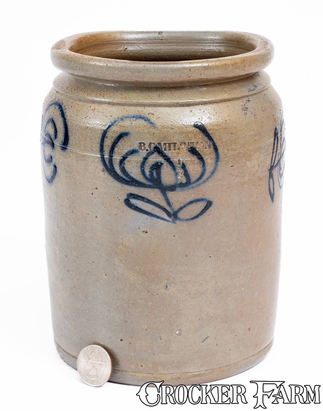 Fine B. C. MILBURN, Alexandria, VA 1/2 Gal. Stoneware Jar w/ Floral Decoration