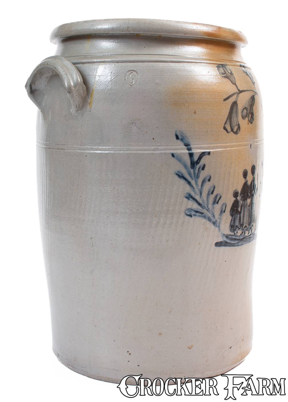 Exceptional Six-Gallon Uniontown, Pennsylvania Stoneware People Crock