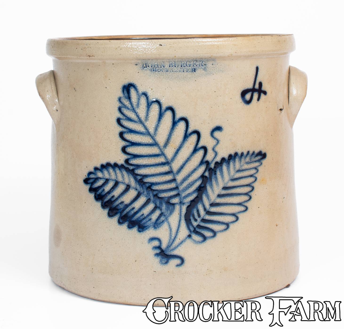 Four-Gallon JOHN BURGER / ROCHESTER, New York Stoneware Crock, circa 1860