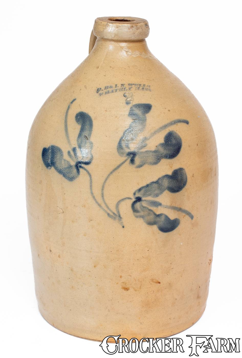 Scarce D.D. & I.N. WELLS / WHATELY, MASS Stoneware Jug, circa 1849-57