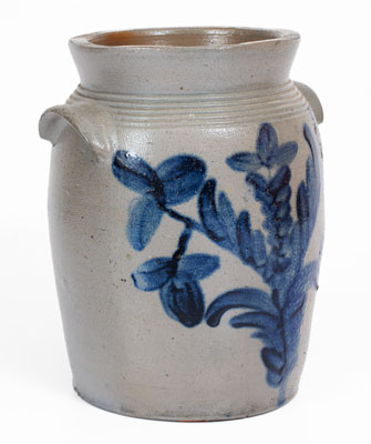 Extremely Rare B.C. MILBURN / ALEXANDRIA, D.C. Stoneware Jar w/ Elaborate Cobalt Floral and Potted Flower Motifs, c1840